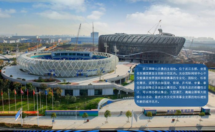 武汉网球公开赛的主场地——光谷国际网球中心,位于武汉东部,坐落在东湖国家自主创新示范区内。