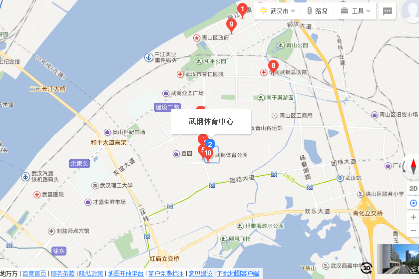 武钢体育中心足球场位于武汉市洪山区仁和路111号武钢体育中心西北角,设置有4片6人场和3片8人场场地。