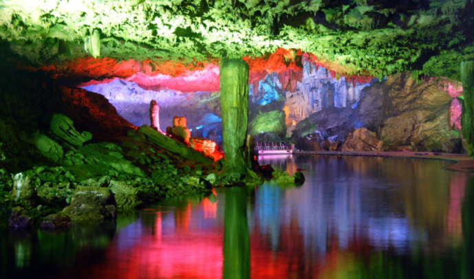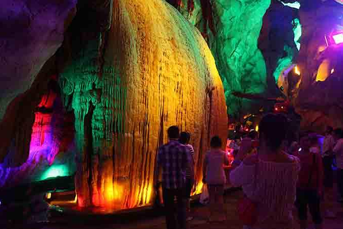 该洞的形成至今约360万年,相传是太乙真人为民治水掘凿而成。主洞全长2000余米,有支洞8条,大小景点100余处,溶洞以“秀、奇、精”为主要特点,为南北走向,前后自然贯通;5条支洞呈东南走向,长约1800米。洞中既有开阔粗犷可容纳万人的大厅,又有曲径通幽的小巷,最高处约20米,最宽处30多米。洞中钟乳倒悬,石柱林立,如一人间仙境。惟妙惟肖的太乙肖像、余音缭绕的天赐神鼓、坐洲观潮的鹦鹉、气势磅礴的大石瀑、巍然耸立的珍珠塔、群仙相会的石笋群、栩栩如生的卧龙池、鲲鹏展翅等等大自然的鬼斧神工令人叹为观止。