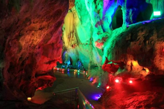 新开发的龙宫支洞,曲径通幽,峰回路转,美蛇化石,恐龙巢穴,石破天惊,一线通天,神蛙伴龙,景点奇特。出洞后便是景色宜人的太乙观。