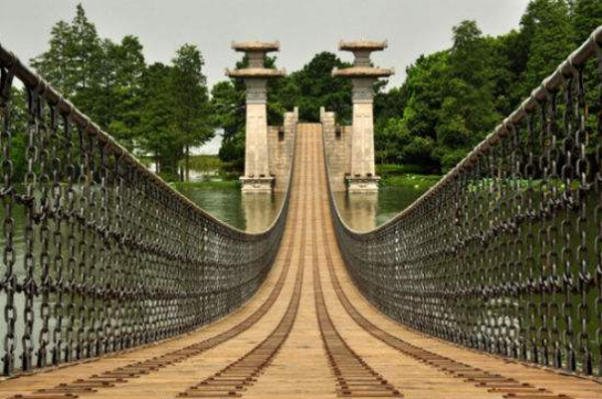 所有建筑物皆为竹木结构:吟波楼把酒临风;吹笛桥凭栏远眺;九曲桥曲径通幽;是天人合一,与大自然对话的绝佳场所。