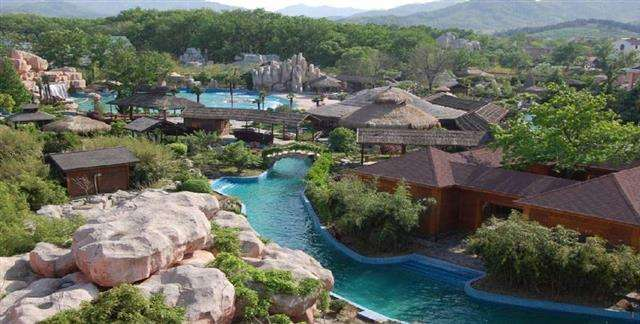 汤池温泉融合温泉自然、闲适、动感、健康等特质,周围树木葱宠,花草繁茂,丘陵起伏,流水潺潺,景色秀丽。唐代诗人李白寄居安陆时曾专程来此游览,留下了“池底烁朱火,沙旁敲素烟。沸珠耀日月,皎镜明中天”的诗句。1937年中共中央委派陶铸在此主办“农村合作人员训练班”,培训抗日干部,当年的办公室、教室,保存完好。建国后除建有浴池、疗养院外,并建了旅社、餐馆接待游人。同时,着意突出温泉产品的文化性和差异化,星罗棋布于景区中的温泉池有动感池区、儿童池区、养生池区、异国风情池区、生态池区及情侣池区等88种风格各异、大小不一的功能温泉池。温泉池区内设有大型泊浪池、温泉滑道、环状漂流河、八色汤、玉女汤、沐芳园、日式温泉汤屋、温泉食坊、休息平台等。在泡浴的同时游客还可在休息厅、按摩中心接受专业的擦修按摩、中医理疗及纯正的南洋spa。