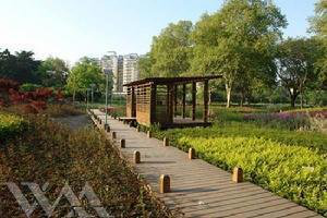 公园占地面积为46万平方米,其中水面7.6万平方米,园内有梅花山、桂花岭、樱花坡、盆景园、中华名塔园等园林景点。