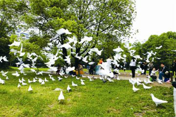 公园里最集中的赏樱处,当数一号门从樱花坡延伸至八匹马、湿地大湖的这片区域。以湿地为中心,圆弧的小土坡边和兰展附近的区域,种植有成片樱花林。沿卵石小径走去,阳光从树间泻下,光瀑如雨;清风从枝间穿过,轻纱如缕。不妨站在樱树下,静静享受漫天花海的感觉。梅花山距离樱花坡很近,挨在樱花旁边有一些宫粉、 樱花长廊绿萼以及芳香四溢的腊梅。第三处赏樱地点是公园里的中华名塔园。这里有一个主塔和一些小塔,都是模仿全国各地名塔的袖珍版,到2013年已有20余年的历史。在主塔的小坡附近,种植着小片樱花树,边逛小塔边赏樱花,也是非常惬意的事情。