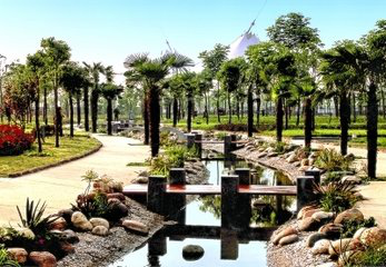 "大气、精致、宁静、开敞、简洁"的武汉江滩,形成"一轴、两带、四区"格局,即江滩景观轴;堤防景观带、滨江亲水带;休闲活动区、中心广场区、体育运动区和园艺景观区。音乐喷泉、水上乐园、戏水梯台等处处体现了亲水的主题,让人们既感受到长江恢宏的气势,又能体味到江南小桥流水的韵味。"以人为本,服务于民"是武汉江滩的宗旨。阳春草木吐新,满园绿意;盛夏绿荫夹道,江风习习;金秋群花吐艳,枫叶显媚;寒冬玉树银装,江天一色。好一个绿滩与清水构成的生态乐园。