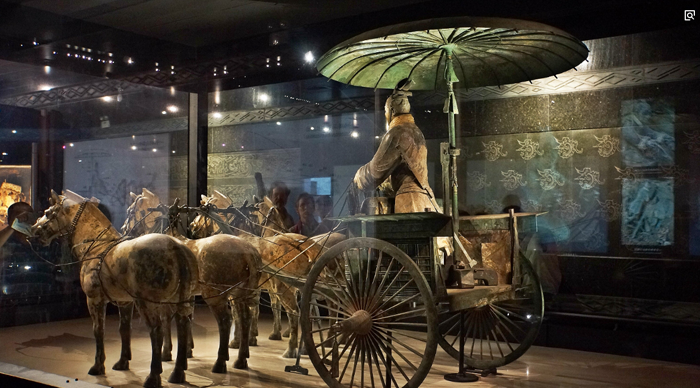 秦始皇兵马俑博物馆位于陕西省西安市临潼区城东,是中国第一个封建皇帝秦始皇嬴政之陵园中一处大型从葬坑,陵园面积218万平方米。博物馆以秦始皇兵马俑为基础,在兵马俑坑原址上建立的遗址类博物馆,也是中国最大的古代军事博物馆。