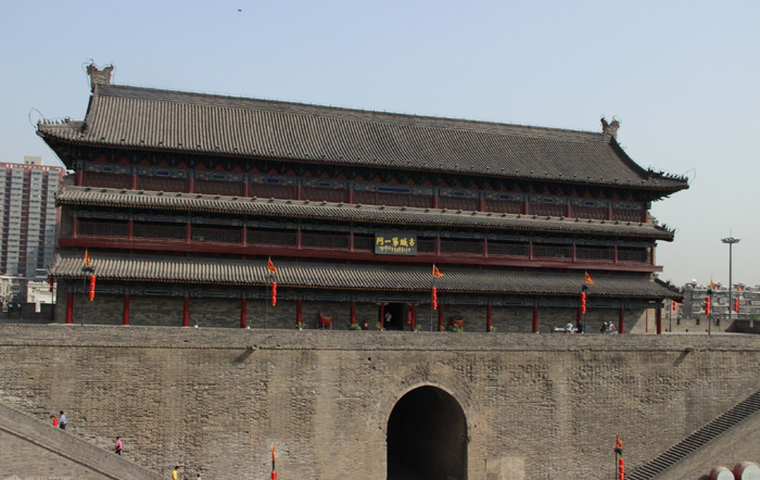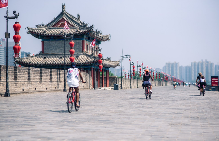 西安城墙景区位于西安市中心区,现存城墙建于明洪武七年到十一年(1374-1378),至今已有600多年历史,是中世纪后期中国历史上最著名的城垣建筑之一,是中国现存最完整的一座古代城垣建筑。 呈长方形,墙高12米,底宽18米,顶宽15米,总周长13.74公里。 有城门四座:东长乐门,西安定门,南永宁门,北安远门。呈长方形,墙高12米,底宽18米,顶宽15米,总周长13.74公里。 西安城墙是在唐皇城的基础上建成的。完全围绕“防御”战略体系,城墙的厚度大于高度,稳固如山,墙顶可以跑车和操练。 早在明王朝建立前,当朱元璋攻克徽州后,一个名叫朱升的隐士便告诉他应该“高筑墙,广积粮,缓称王”。朱元璋采纳了这些建议。当全国统一后,他便命令各府县普遍筑城。朱元璋以为“天下山川,唯秦中号为险固”。西安古城垣就是在这个建城的热潮中,由都督濮英主持,在唐皇城旧城基础上扩建起来的。明代扩建后的西安城墙高12米,顶宽12-14米,底宽15-18米。城墙每隔120米修敌台一座,突出在城墙之外,顶与城墙面平。这是专为射杀爬城的敌人设置的。敌台之间距离的一半,恰好在弓箭的有效射程之内,便于从侧面射杀攻城的敌人。城墙上共有敌台98座,上面都建有驻兵的敌楼。