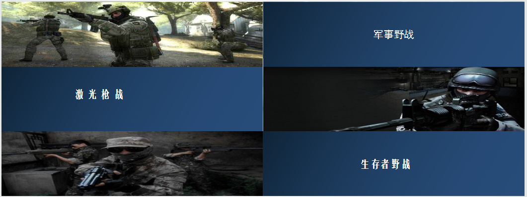 2、目标:通过对抗游戏让学员感受快乐,让学员能体验真实战场环境下才能激发出来的勇气、信念、谋略、战友情。